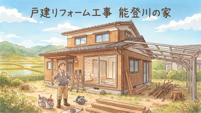 外壁を張り替えた部分のみ、耐震補強工事も実施。これの写真もあるはずなんですが(木の筋交いを追加してるやつ)、執筆時点で行方不明でした。すみません。